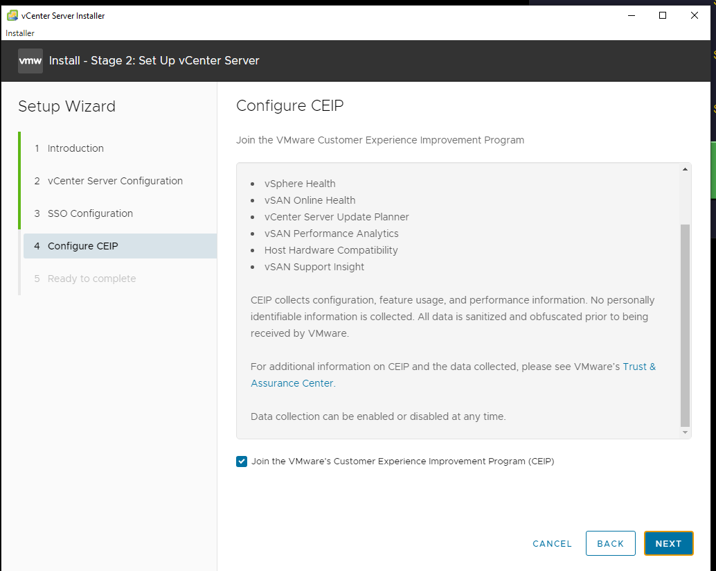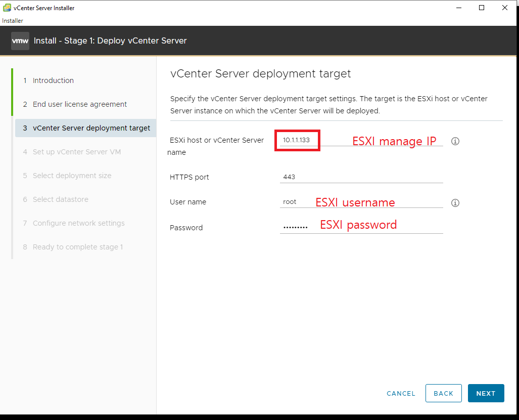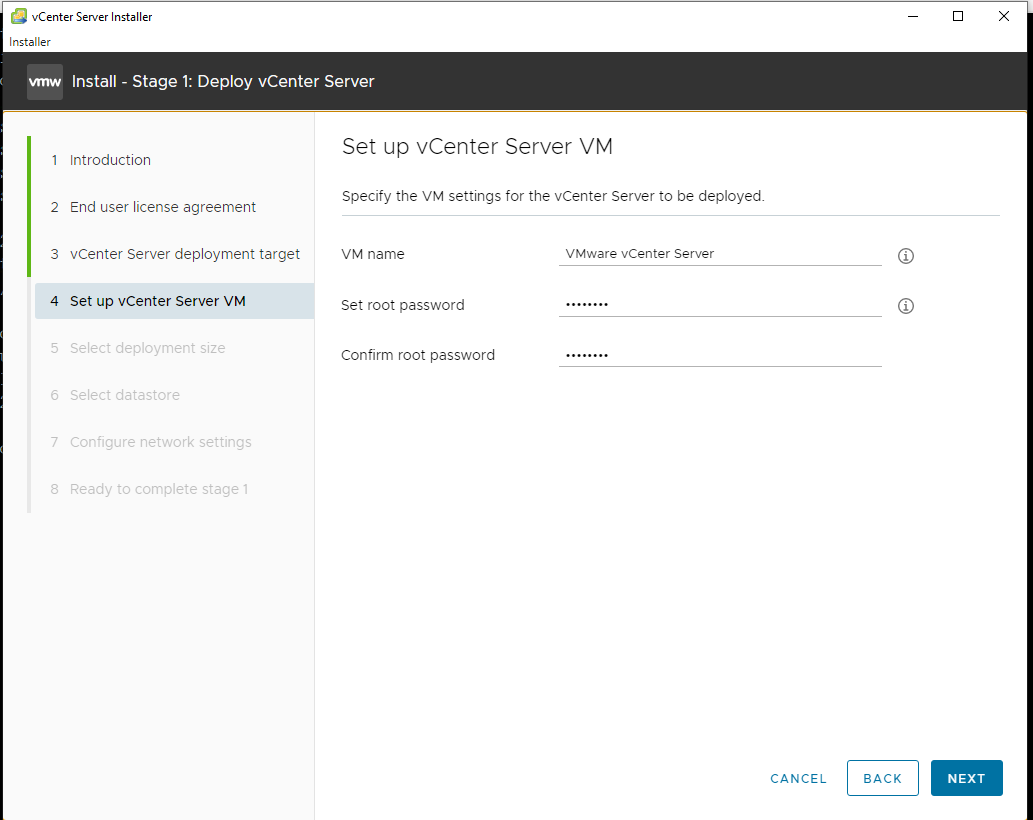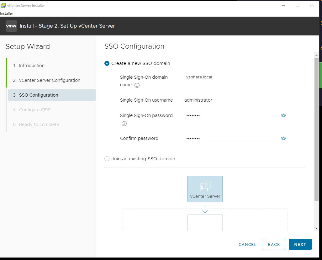 사용할 vcenter 비번 설정 (CCIEW 비번) 후 NEXT 클릭